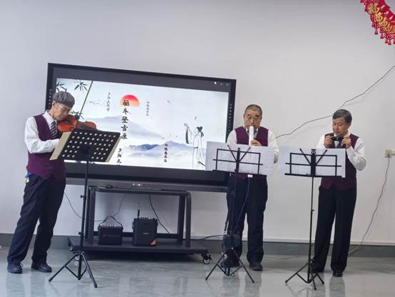 情况通报结束后,由工大夕阳红歌舞团带来的文艺表演在热烈的掌声中拉开帷幕。老同志们精心编排、倾情演绎,节目形式多样,内容丰富:有小合唱俄罗斯民歌《山楂树》、《珊瑚颂》、女生独唱《我们的中国梦》、朝鲜族舞蹈《红太阳照边疆》、乐器合奏《化蝶》、旗袍表演:《中国茶》。舞台上,老同志们神采奕奕,全情投入,用歌声抒发对党的热爱、对生活的赞美,用舞姿展现新时代老年人的风采和幸福晚年。整场演出气氛热烈,高潮迭起,充分展现了我校离退休老同志老有所乐、老有所为的良好状态和积极向上的银龄风采。